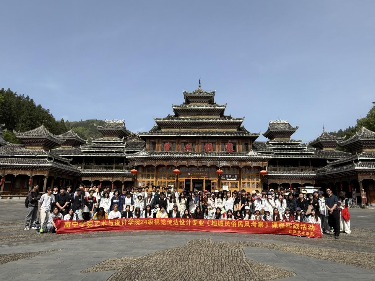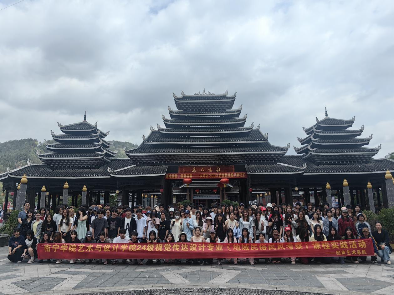为深化教学与民族地域文化的有机融合,在艺术与设计学院视觉传达设计教研室邓海贝、王鹤霏、赵彤、杨婧四位老师的带队下2024级视觉传达设计专业共144名学生于4月14日至21日赴肇兴侗寨、程阳八寨开展为期8天的《地域民俗民风考察》课程实践活动。